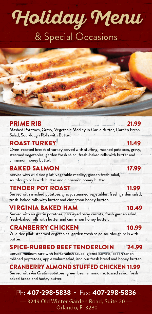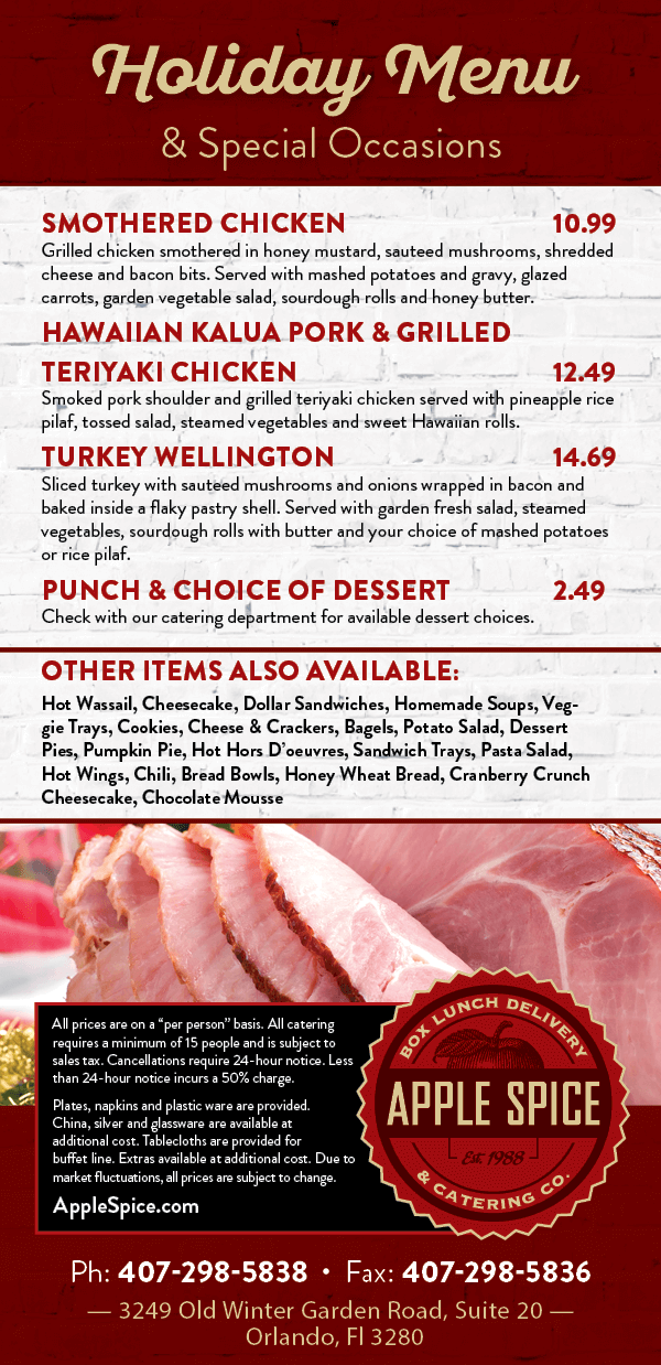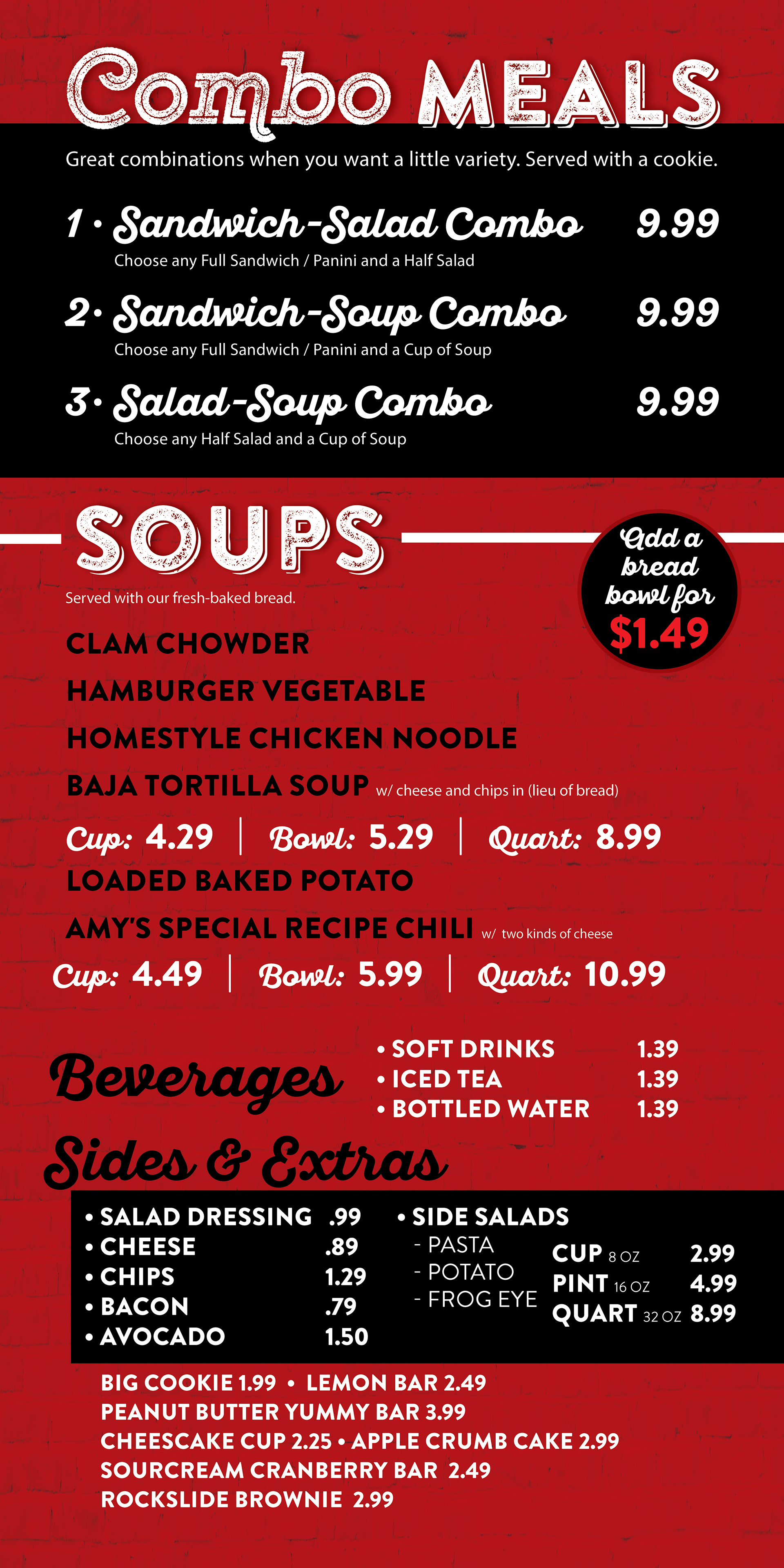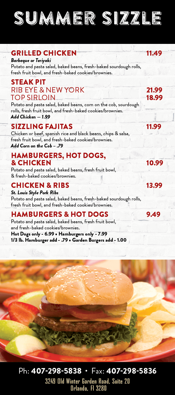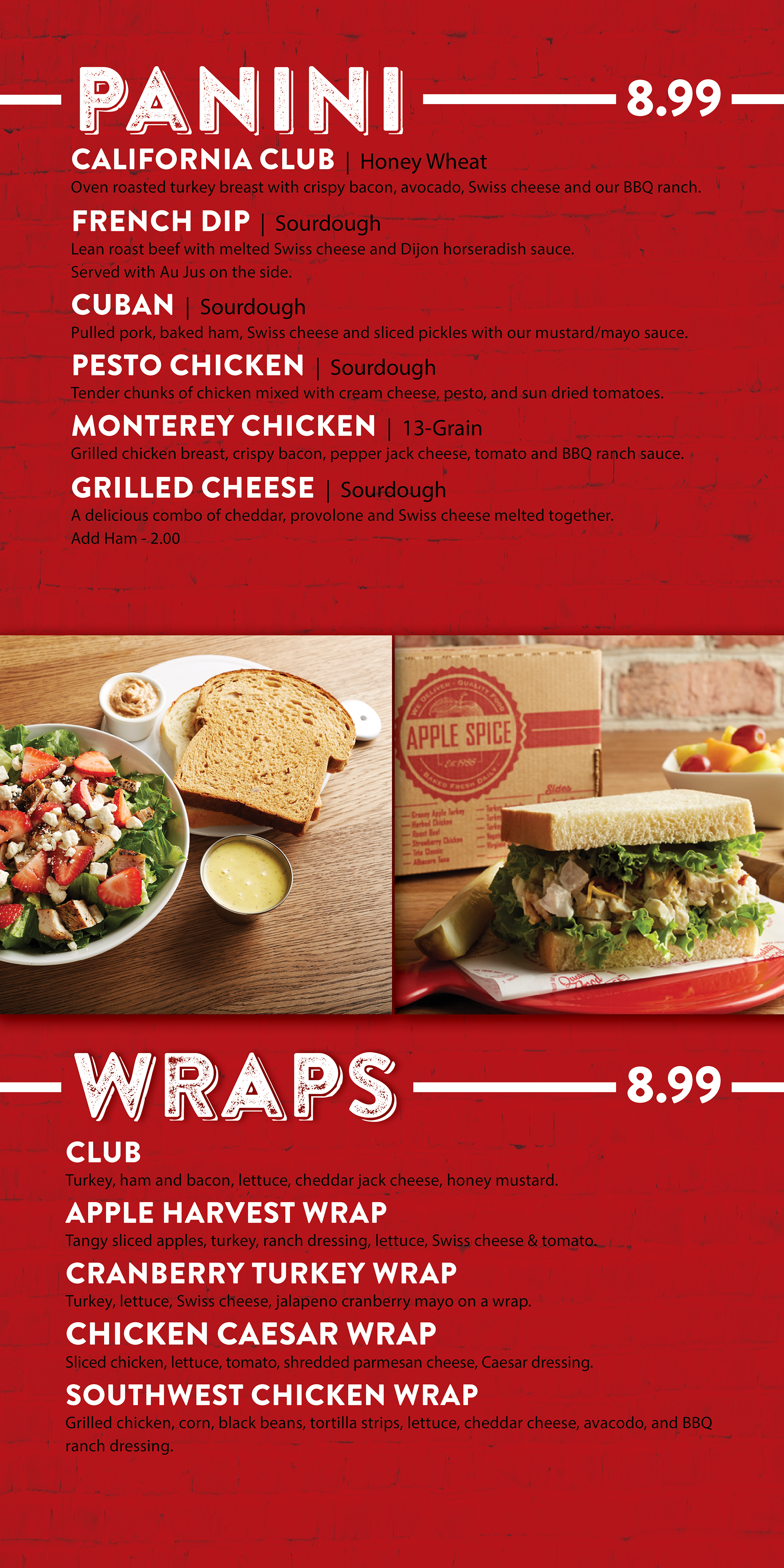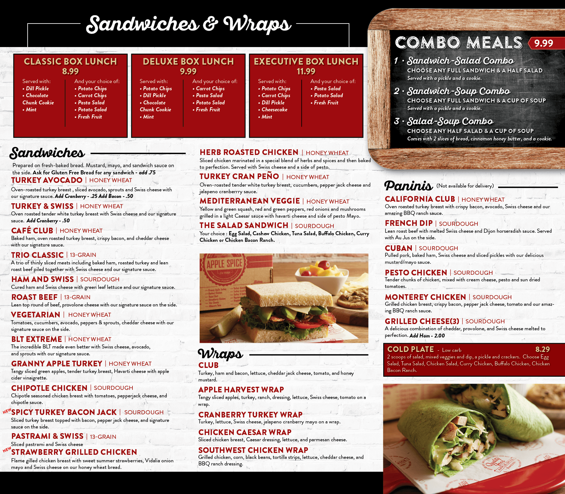 Create menus for national catering and box lunch chain, using InDesign to create double sided menus and other print media.